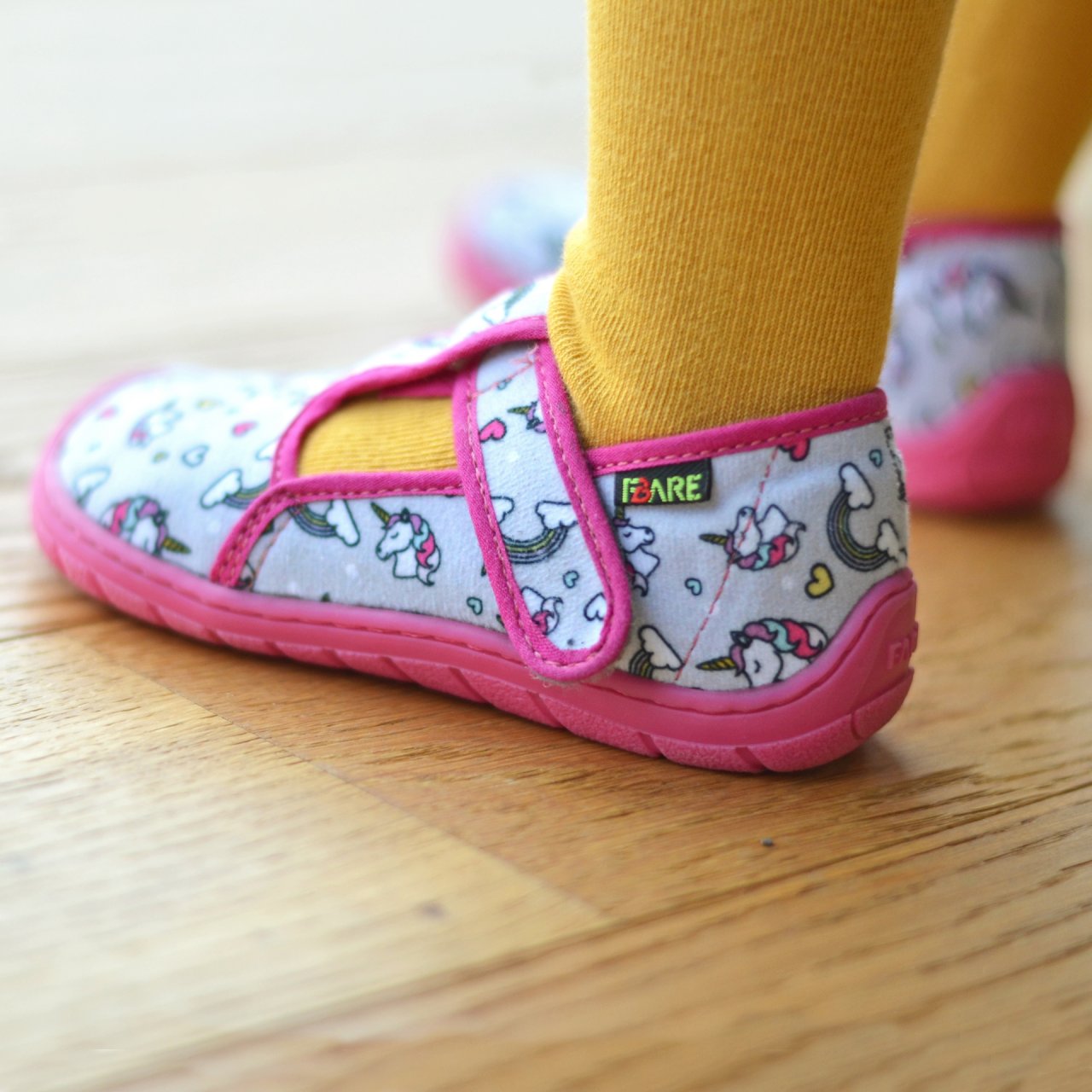 The flexible barefoot sole FARESOLE SENSE adapts to the natural movement of the foot and provides the necessary level of protection for indoor use. Hook-and-loop fastening allows easy putting on and taking off and supports children’s independence during everyday wear.