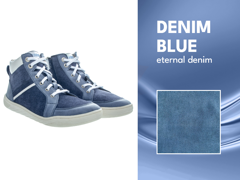A deep blue shade inspired by classic denim. Denim is timeless, versatile, and always in style. It effortlessly combines elegance with comfort and is easy to mix and match. This year, we have used high-quality leather in this denim-inspired shade for BARE ANKLE BOOTS – MATEO ALL-SEASON SHOES for both kids and adults MATEO ADULTS. We haven’t forgotten about the little ones either – this stylish denim touch is also featured on our MID-WIDE SUMMIT CHILDREN’S ALL-SEASON BOOTS with a practical Velcro closure.