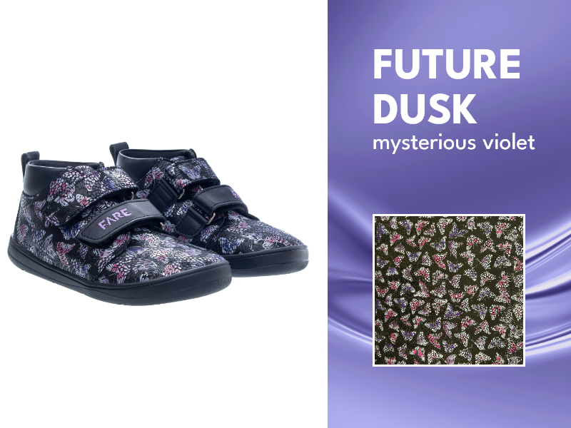 This mysterious shade, balancing between blue and purple, evokes a futuristic feel and is perfect for those who seek bold and unconventional pieces. In women’s footwear, it brings a modern and sophisticated look. We have incorporated this color into our FARE BARE AVILA ALL-SEASON ANKLE BOOTS for women and FARE MID-WIDE CHILDREN’S ALL-SEASON BOOTS BUTTERFLIES. These models feature delicate butterfly details in this shade, adding a youthful and stylish vibe.